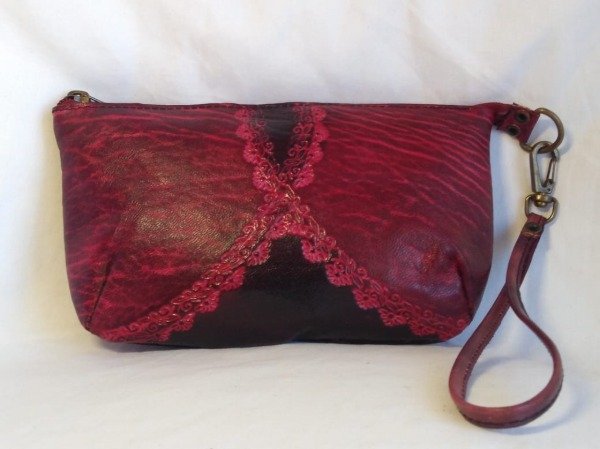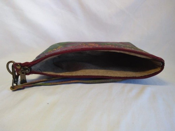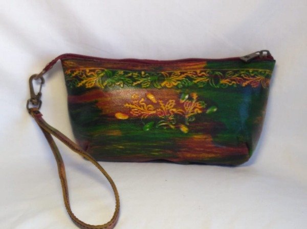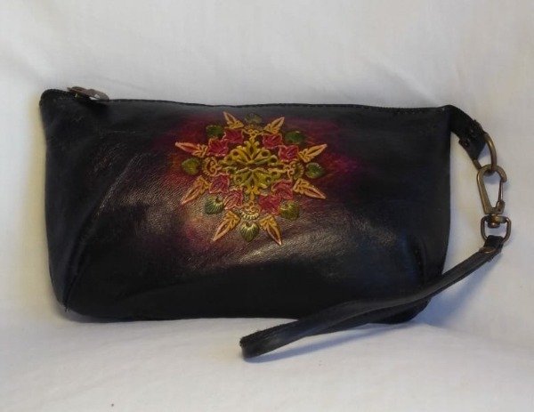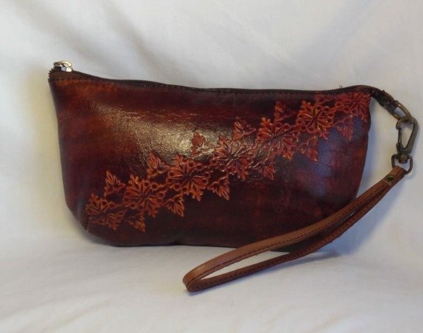 Monedero grande de cuero cincelado, forrado por dentro.